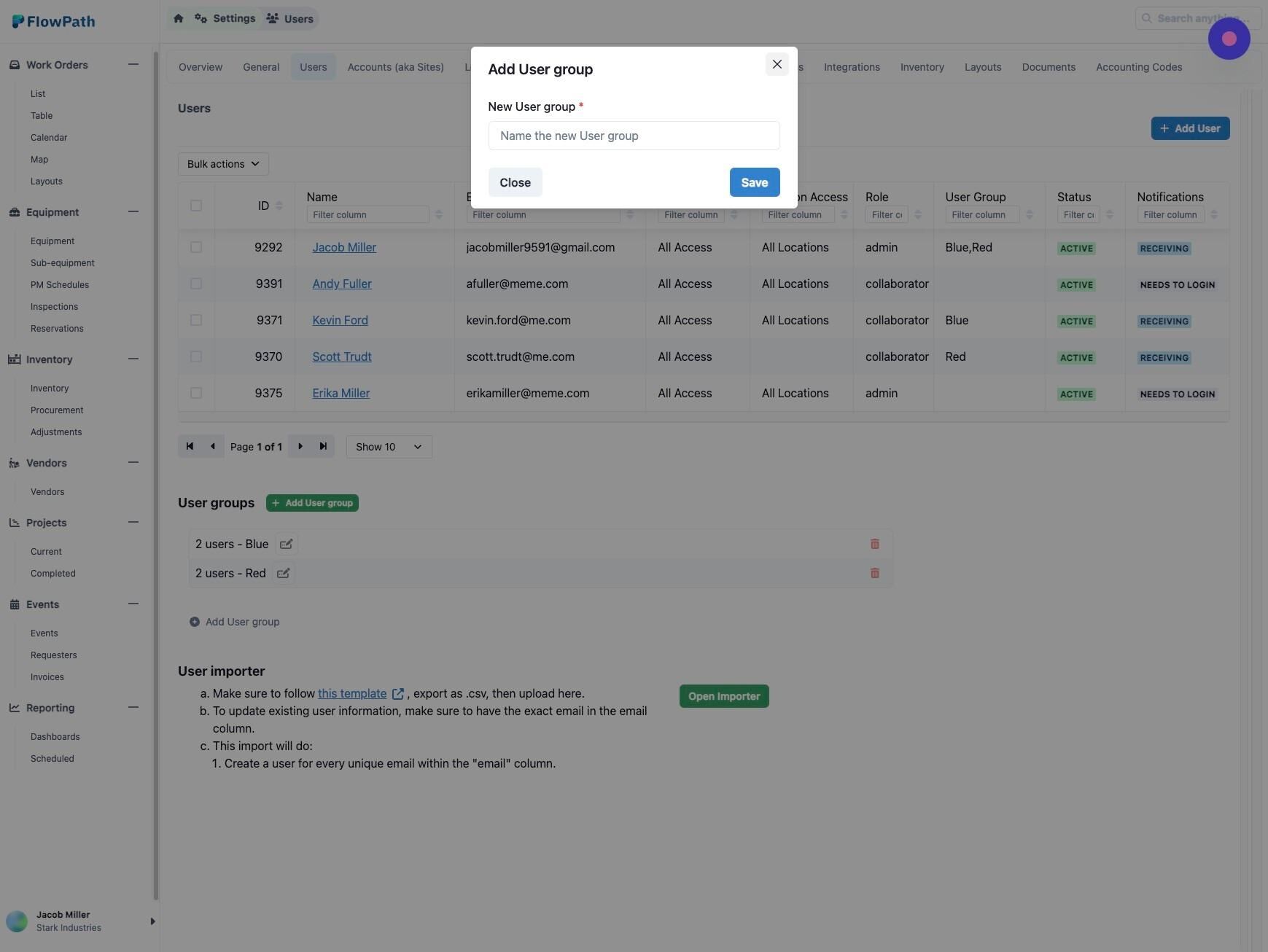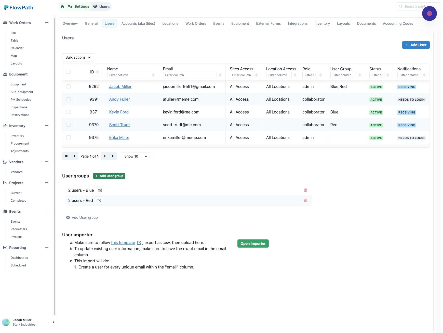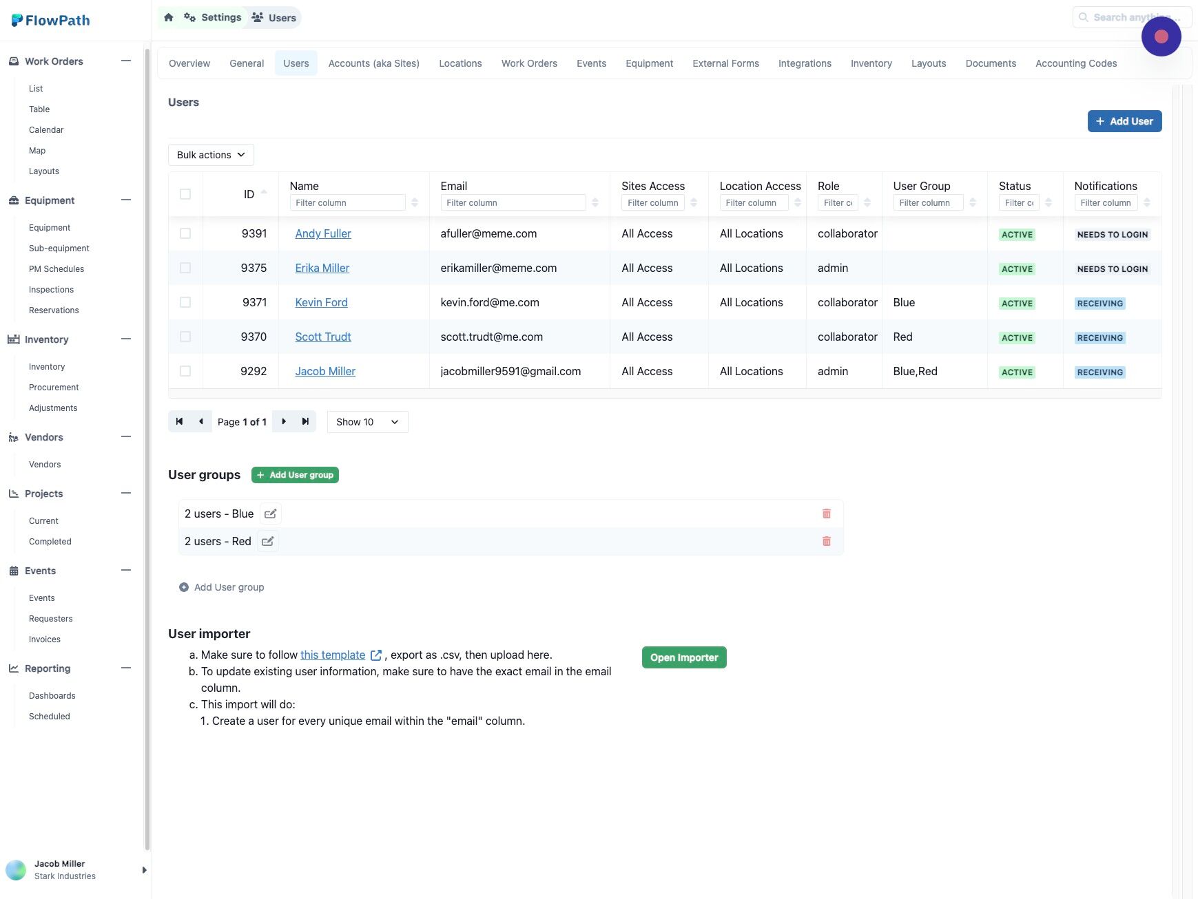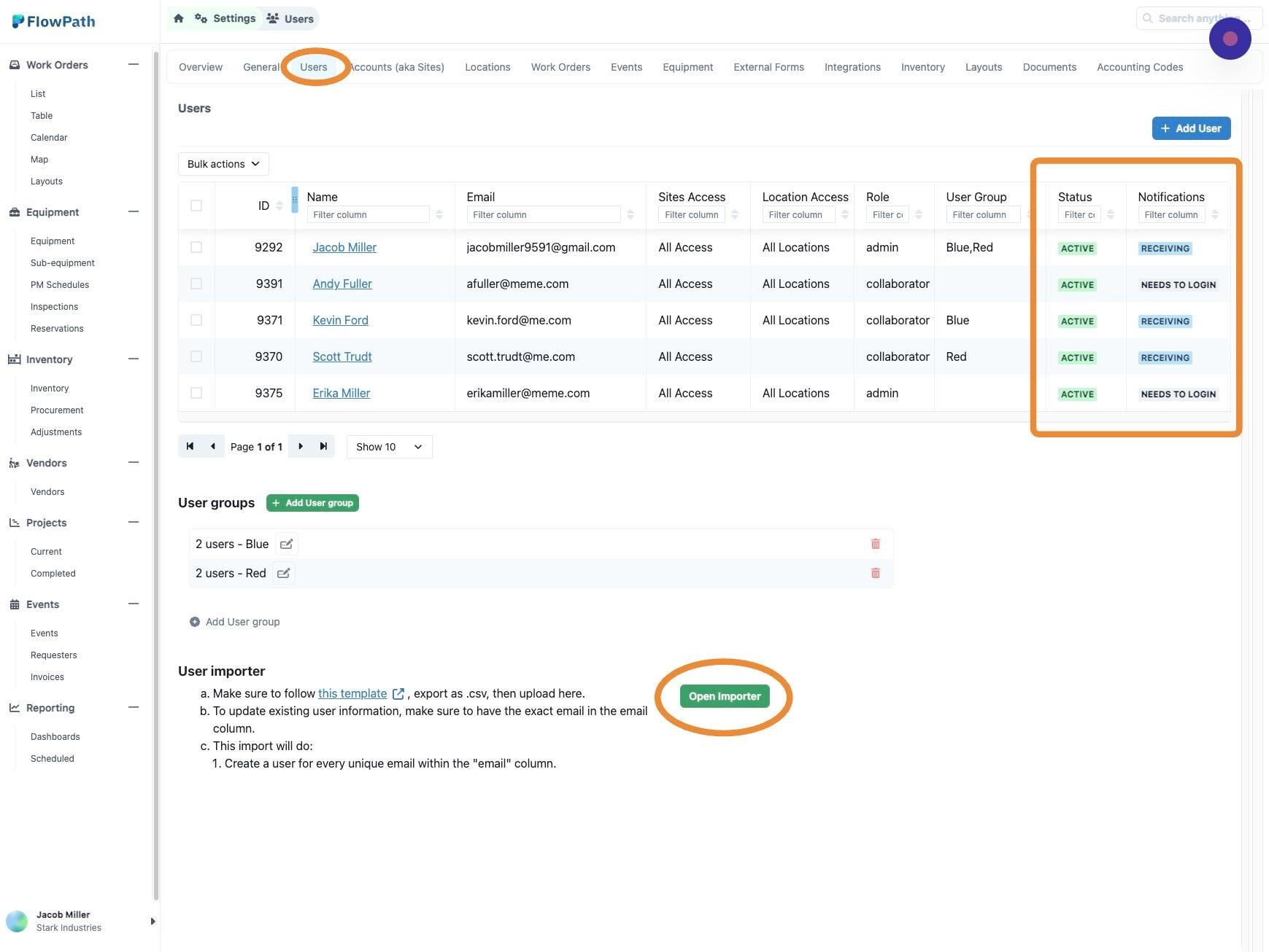 6. User tab will show ALL users regardless of status and their notifications. You can also use our importer for a bulk user upload.
