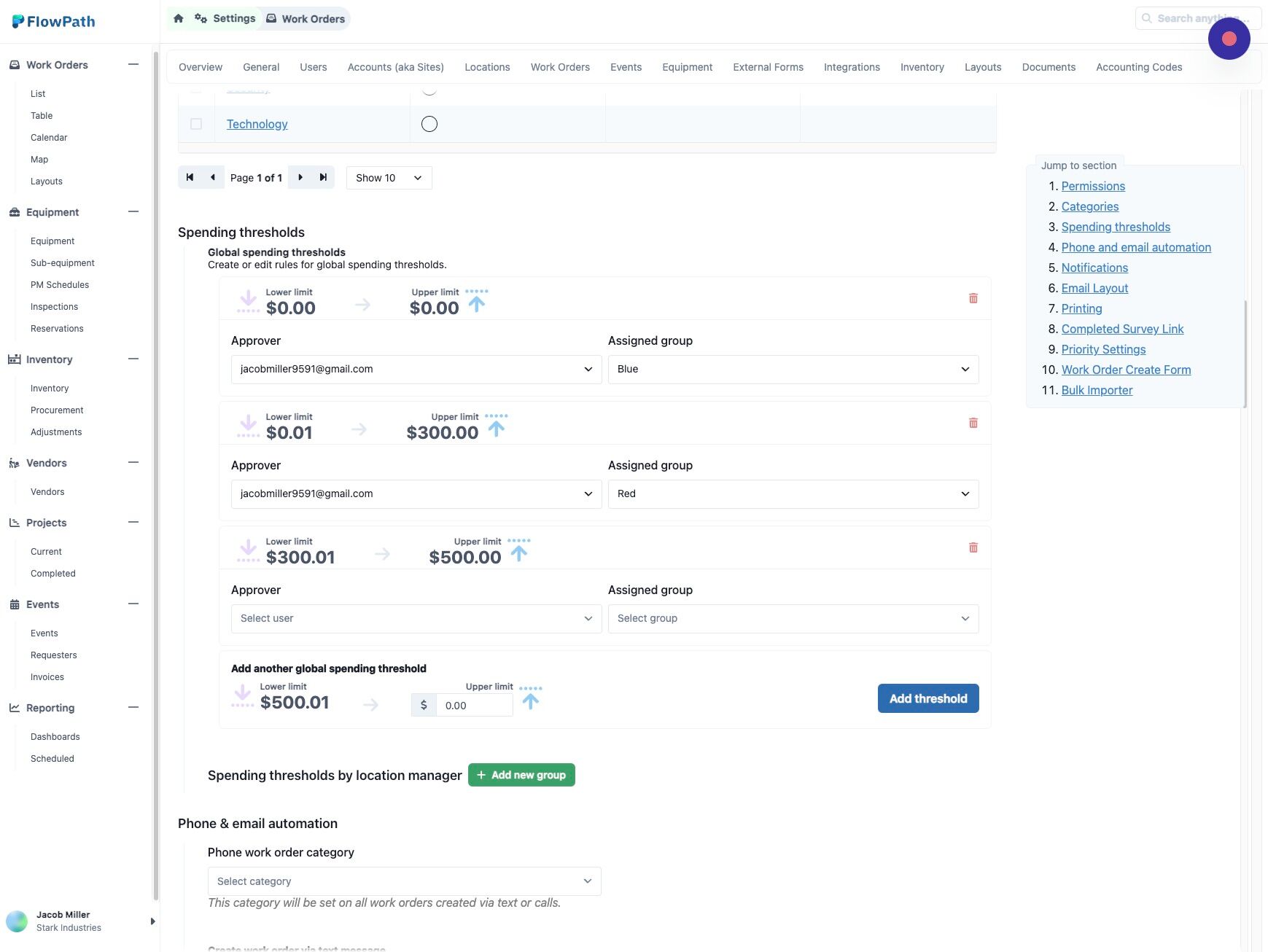 26. See current spending thresholds to edit or delete. Click "Add threshold" to create a new one.