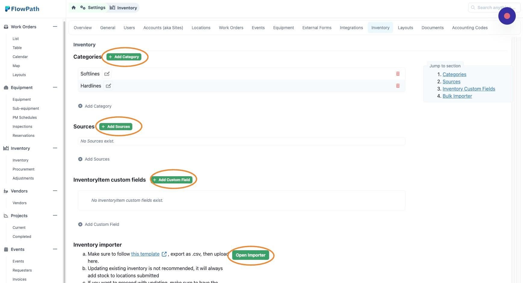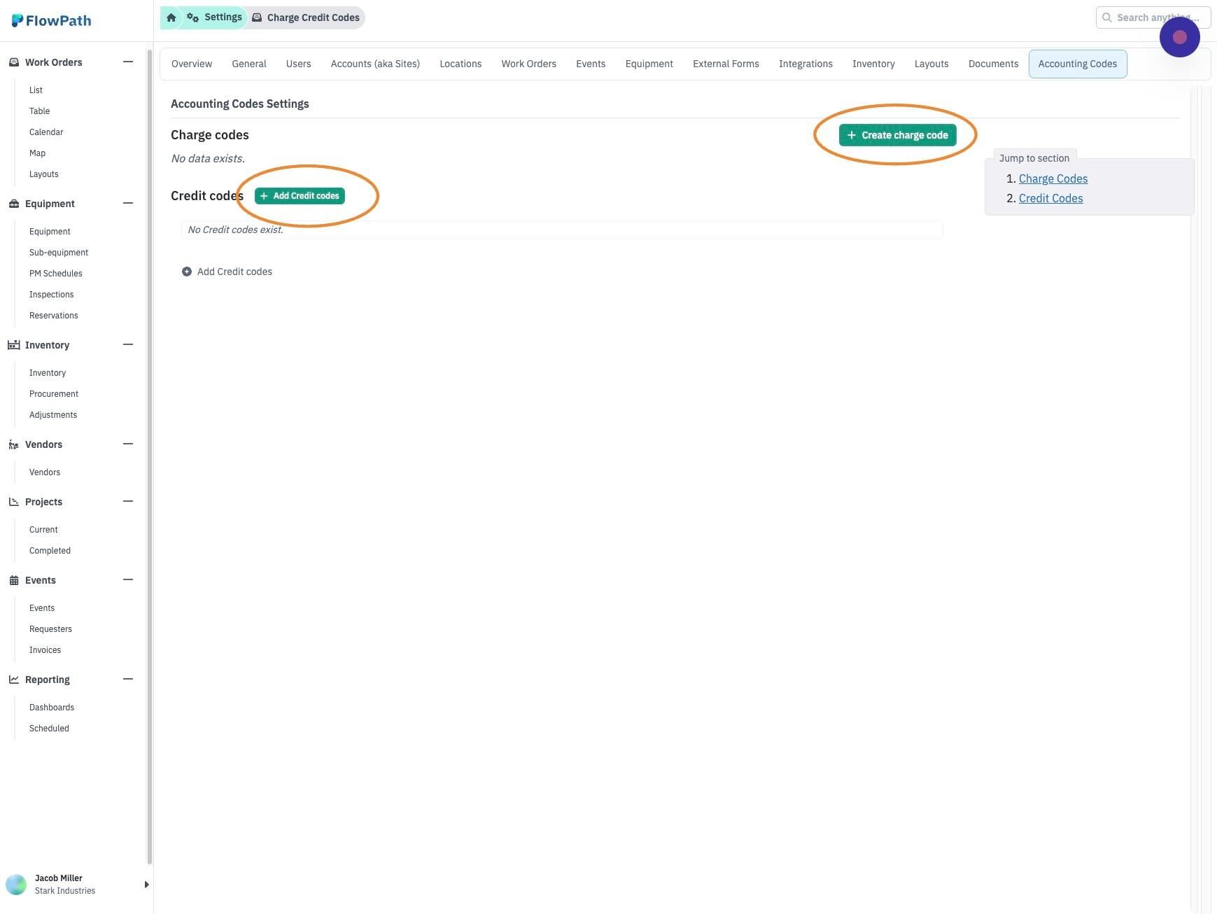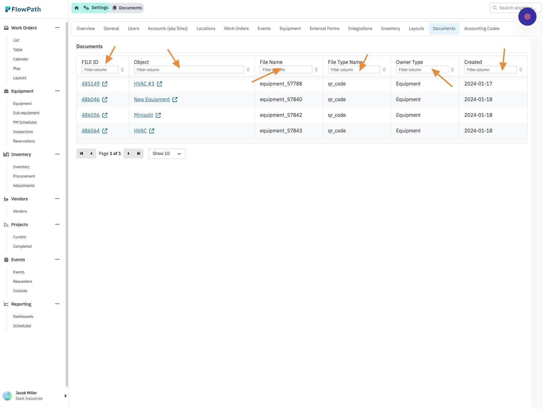 50. Equipment tab is where you can add and delete equipment, manufactures you work with and generate QR/Bar codes.