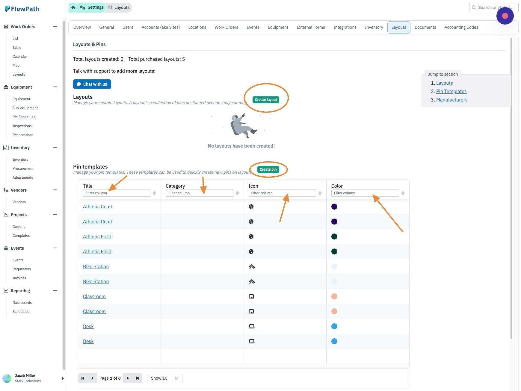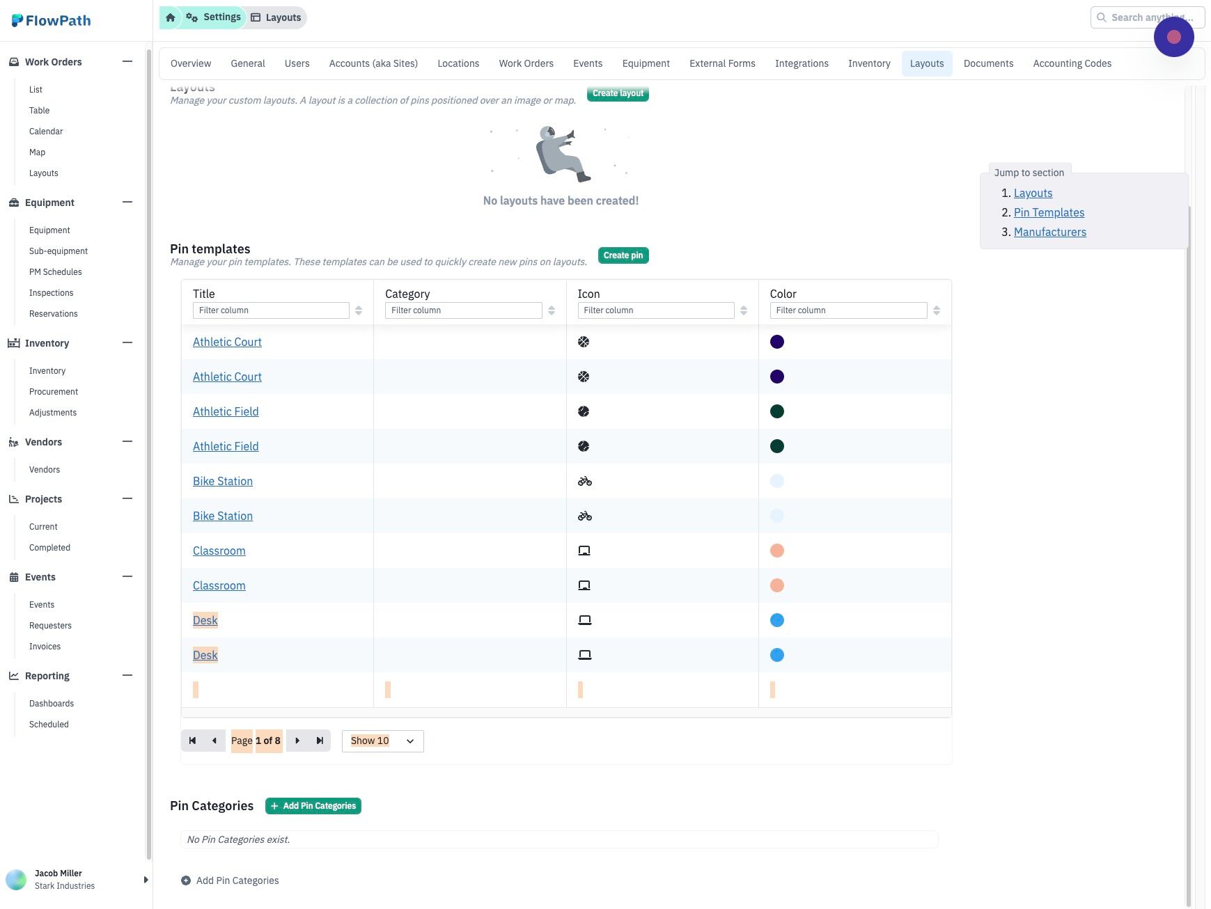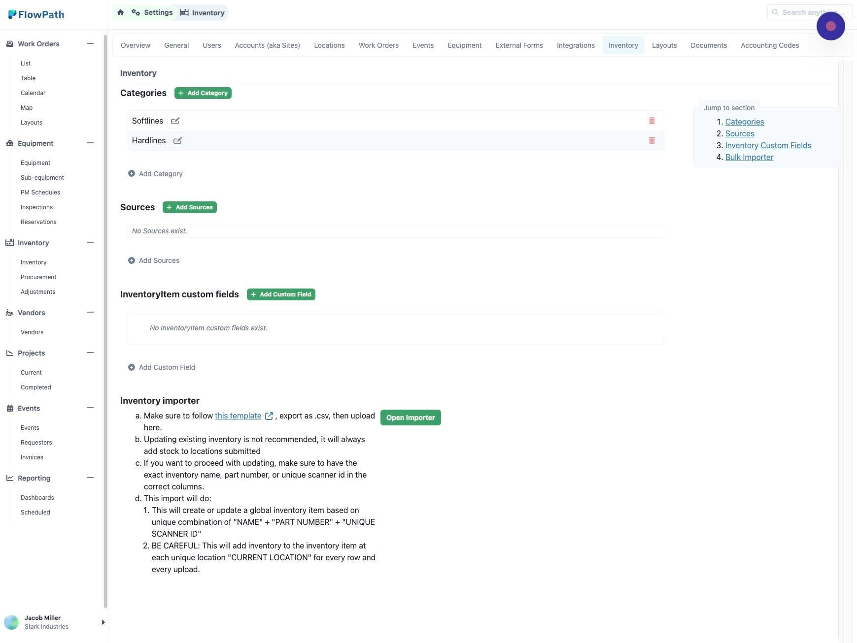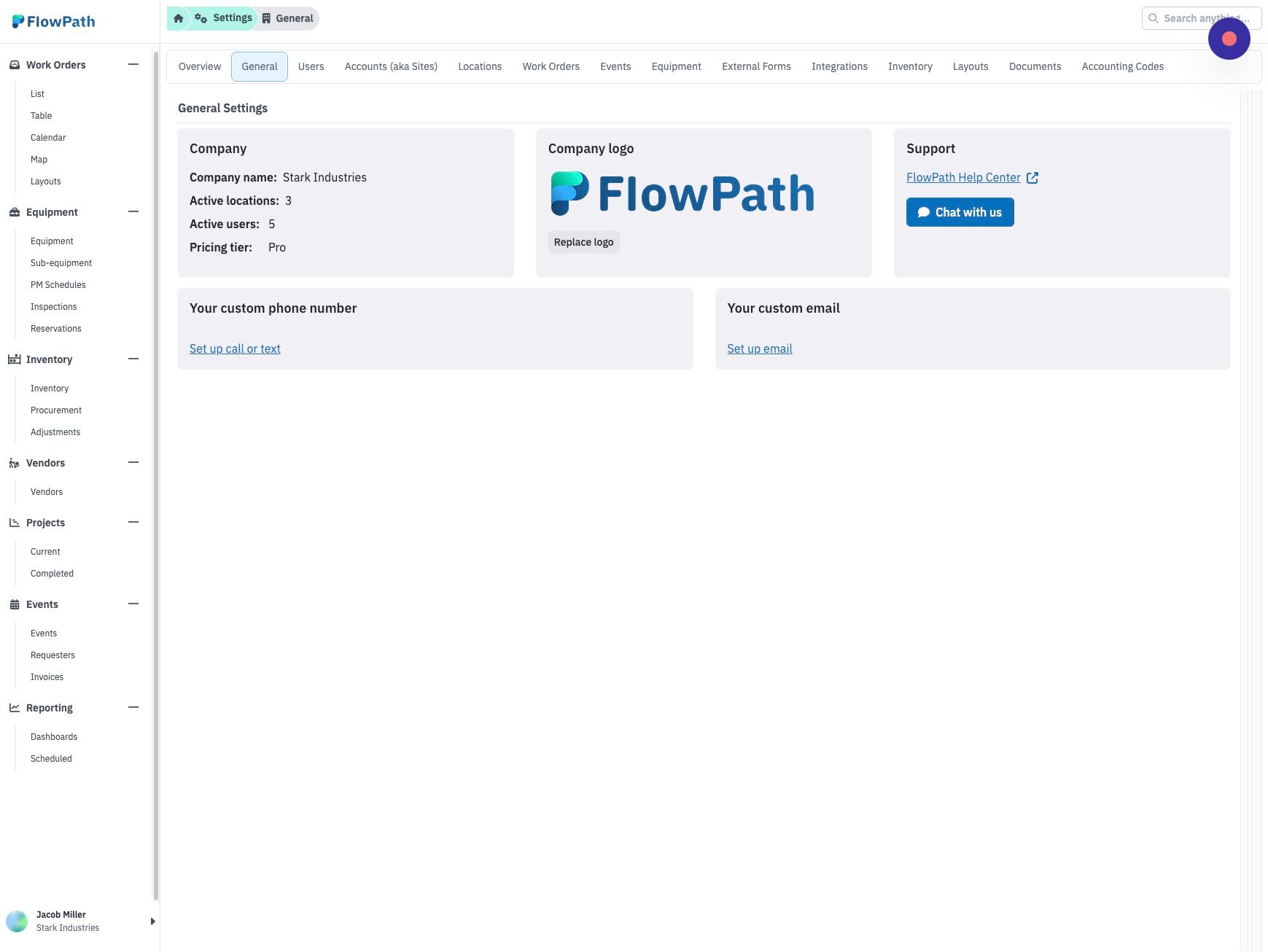 50. Equipment tab is where you can add and delete equipment, manufactures you work with and generate QR/Bar codes.