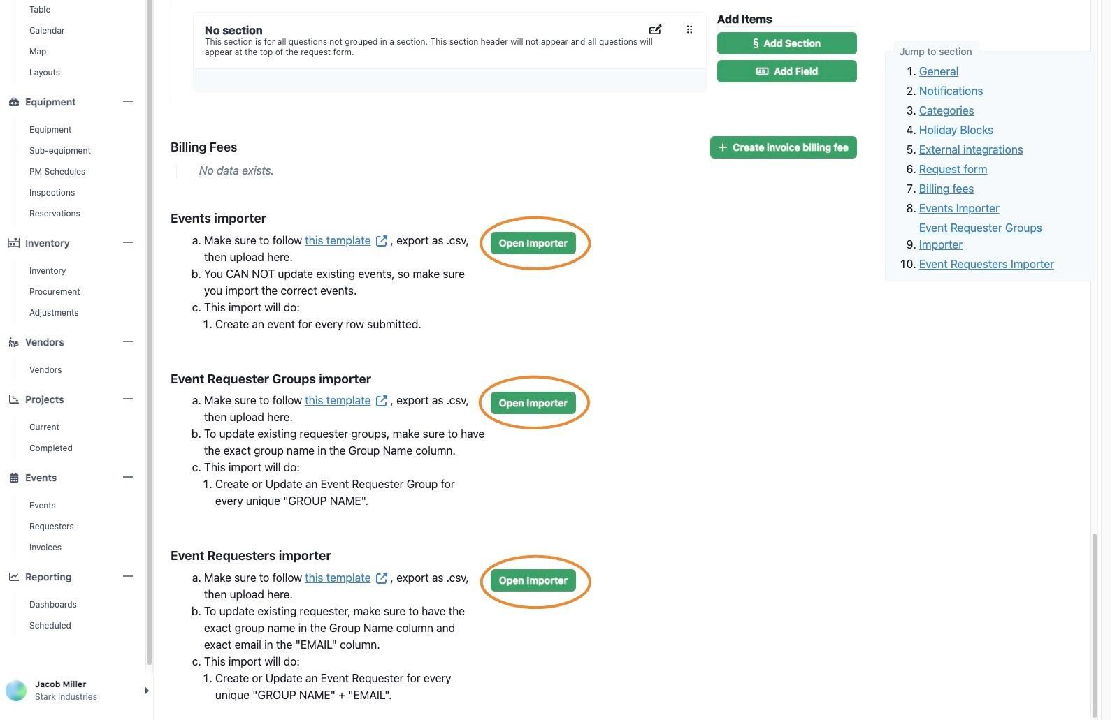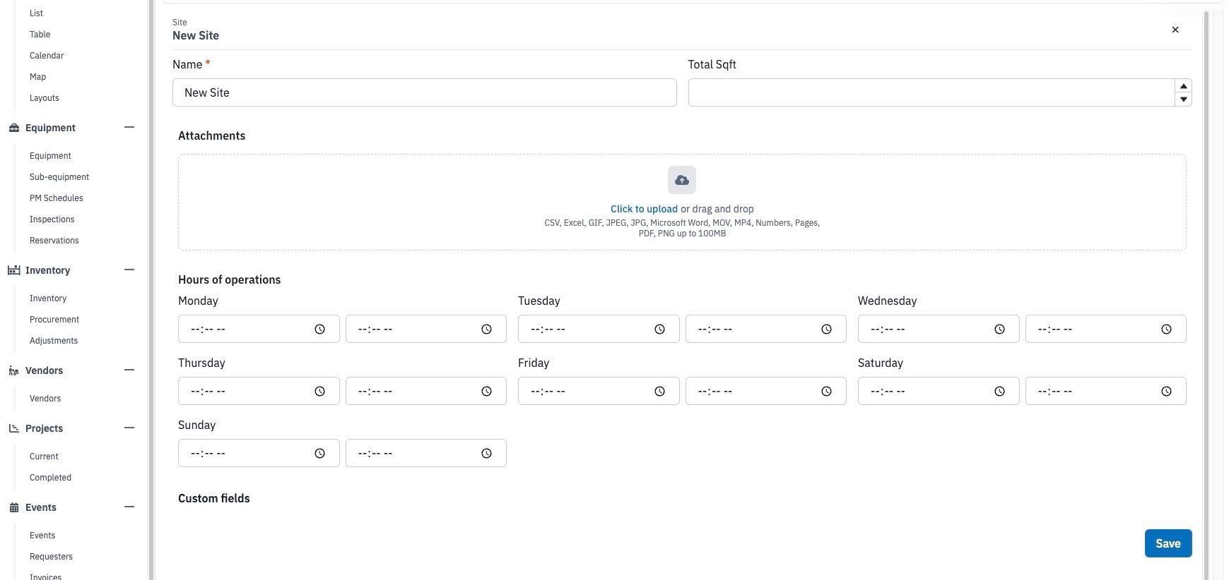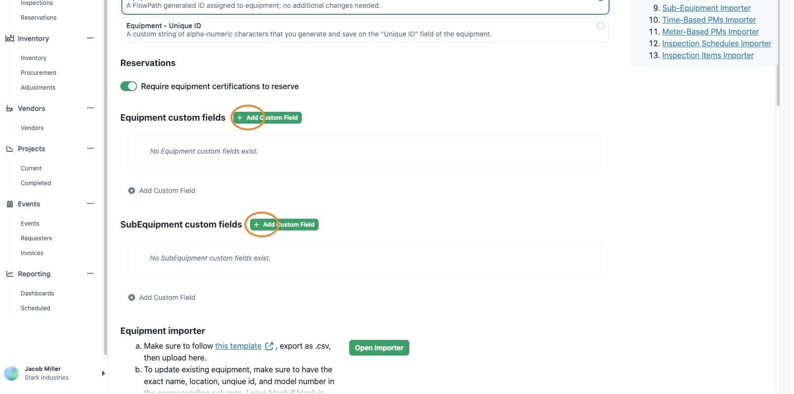 55. Toggle off and on if reservations are required for equipment and add any custom fields to either or both equipment and sub equipment.