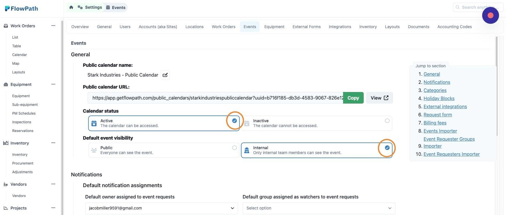 36. Quickly mark if a calendar can be accessed and if it will be a public or internal calendar of events.