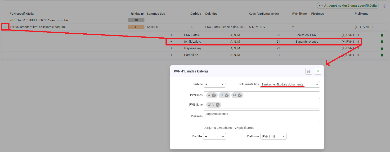 PVN specifikācijas ierakstu labošana notiek līdzīgi, kā jaunu ierakstu pievienošana, ar galveno atšķirību - logs, kurā veikt izmaiņas atveras noklikšķinot jebkur vienā rindā ar labojamo ierakstu.