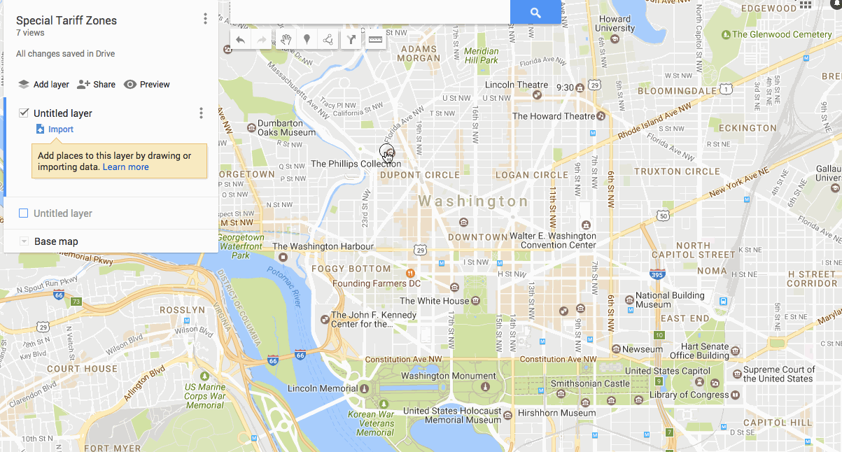 To start rounding your areas, open you Map document and choose "draw a line" function. Please do not use more than 30 dots for one zone. After zone is ready you can check its square/border length and color them in different colors.