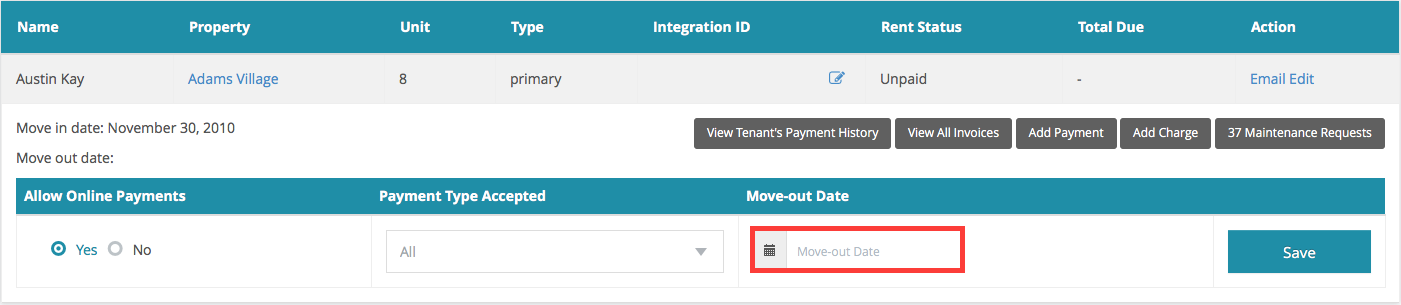 If your manager account is not utilizing one of our automated accounting software integrations, you may find it necessary to move out a resident from the system. To do so, please follow the steps below.