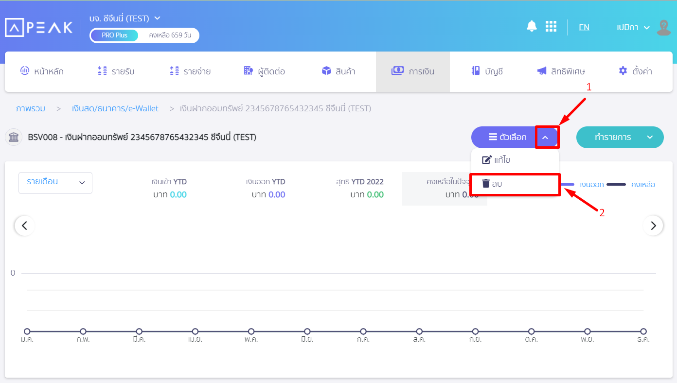 กรณีที่ 1 การลบช่องทางการเงินที่ยังไม่มีรายการเคลื่อนไหว