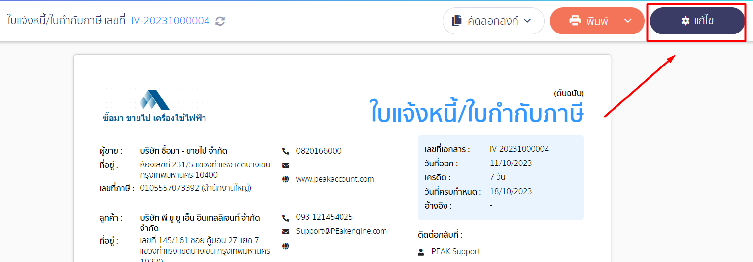 ภาษีขายในเอกสารขายของ PEAK เกิดขึ้นตอนไหน
