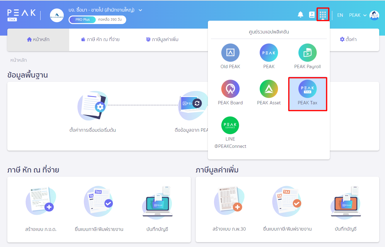 ซึ่ง PEAK TAX จะสามารถใช้ได้ในแพ็กเกจ Pro Plus แต่ถ้าหากคุณไม่ได้ใช้แพ็กเกจ Pro Plus แต่ต้องการทำข้อมูลภาษีใน PEAK คุณสามารถดาวน์โหลดรายงานภาษีขายหรือรายงานภาษีซื้อไปใช้ทำแบบภาษีด้านนอกได้เช่นกัน แต่หากต้องการใช้งานครบจบในที่เดียวทั้งบัญชีและภาษีสามารถกดอัปเกรดกิจการคุณให้เป็นแพ็กเกจ Pro Plus ได้เลยตั้งแต่ตอนนี้