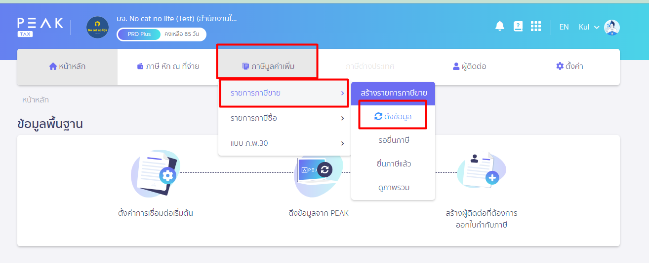 ฉันจะดึงข้อมูลภาษีซื้อ-ขายเข้า PEAK TAX ได้อย่างไร