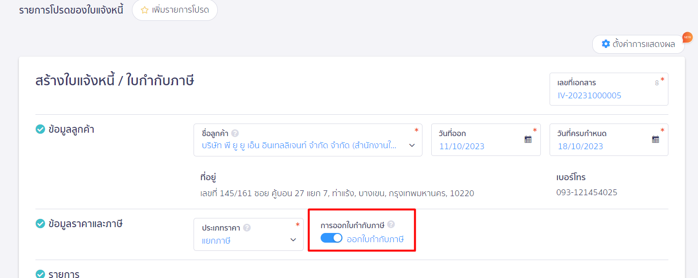 ใบแจ้งหนี้/ใบกำกับภาษี