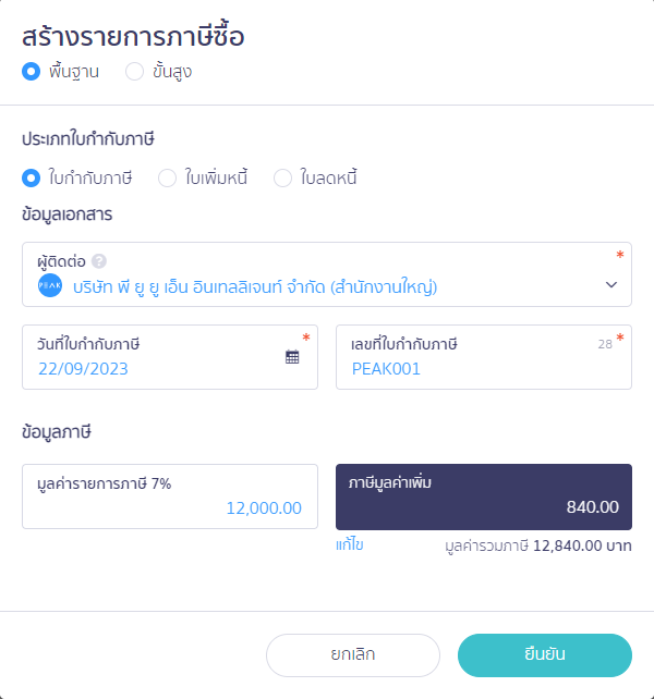 2. สร้างแบบ ภ.ง.ด.1 ด้วยตนเองใน PEAK Tax