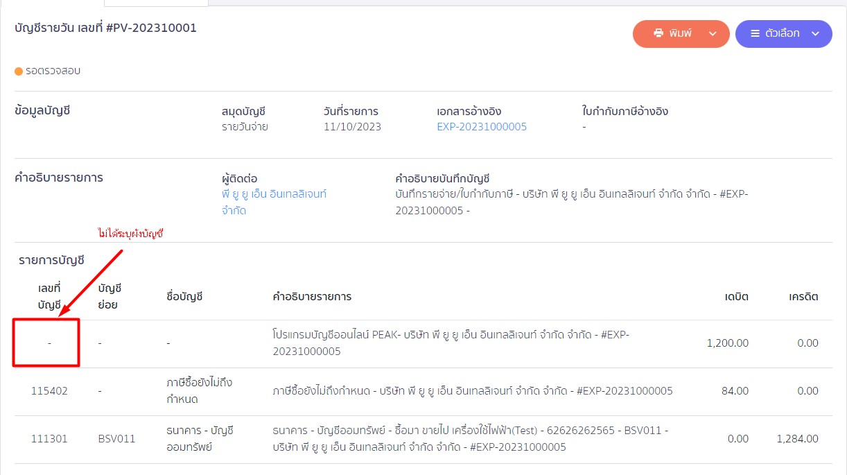 เอกสารบันทึกรายจ่าย( EXP) ลงทะเบียนใบกำกับภาษีซื้อแล้ว แต่ค้นหาเอกสารที่เมนูใบกำกับภาษีซื้อไม่พบ