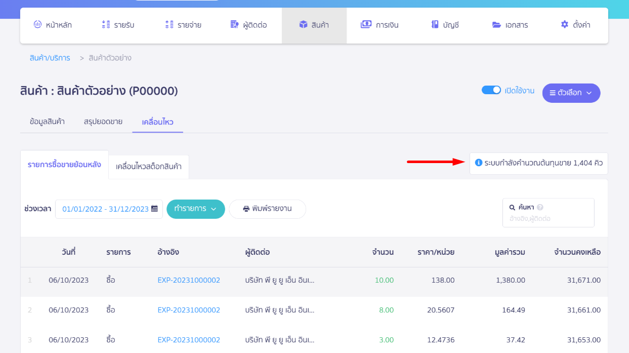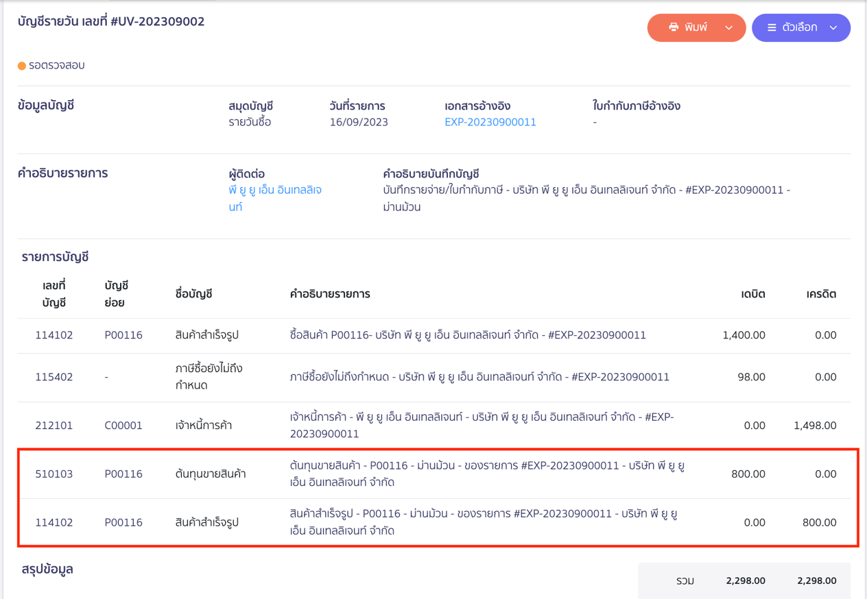 หากต้นทุนขายถูกบันทึกบัญชีที่เอกสารซื้อสินค้า ตามตัวอย่างในภาพนี้