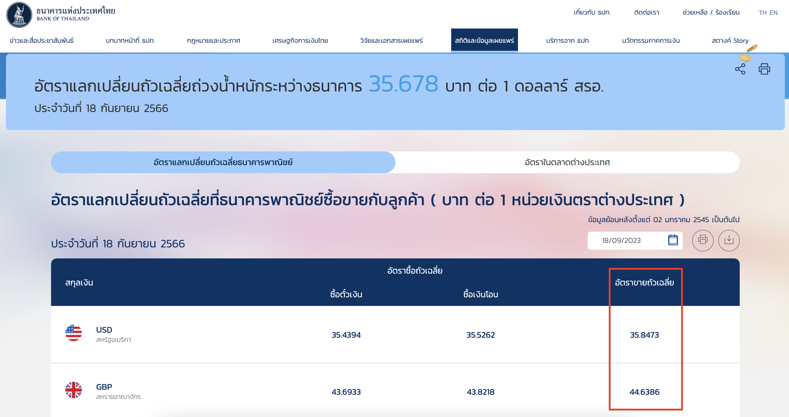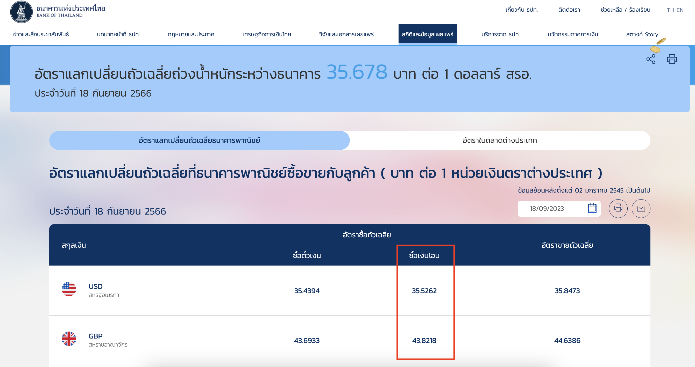 เช่น หากมีการสร้างเอกสารวันที่ 19/09/2023 ระบบจะดึงข้อมูลของธนาคารแห่งประเทศไทยเป็นวันที่ 18/10/2020 หากวันที่ 18/09/2023 เป็นวันจันทร์ ระบบจะไปดึงข้อมูลของวันศุกร์แทน ตรวจสอบอัตราแลกเปลี่ยนเงินตราต่างประเทศประจำวัน