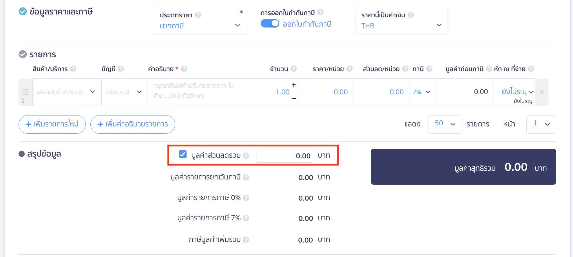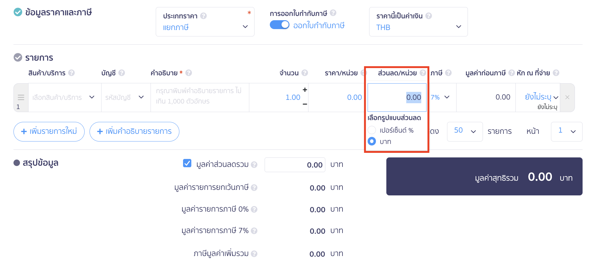 โดย PEAK สามารถใส่ส่วนลด ได้ 2 แบบ ดั้งนี้