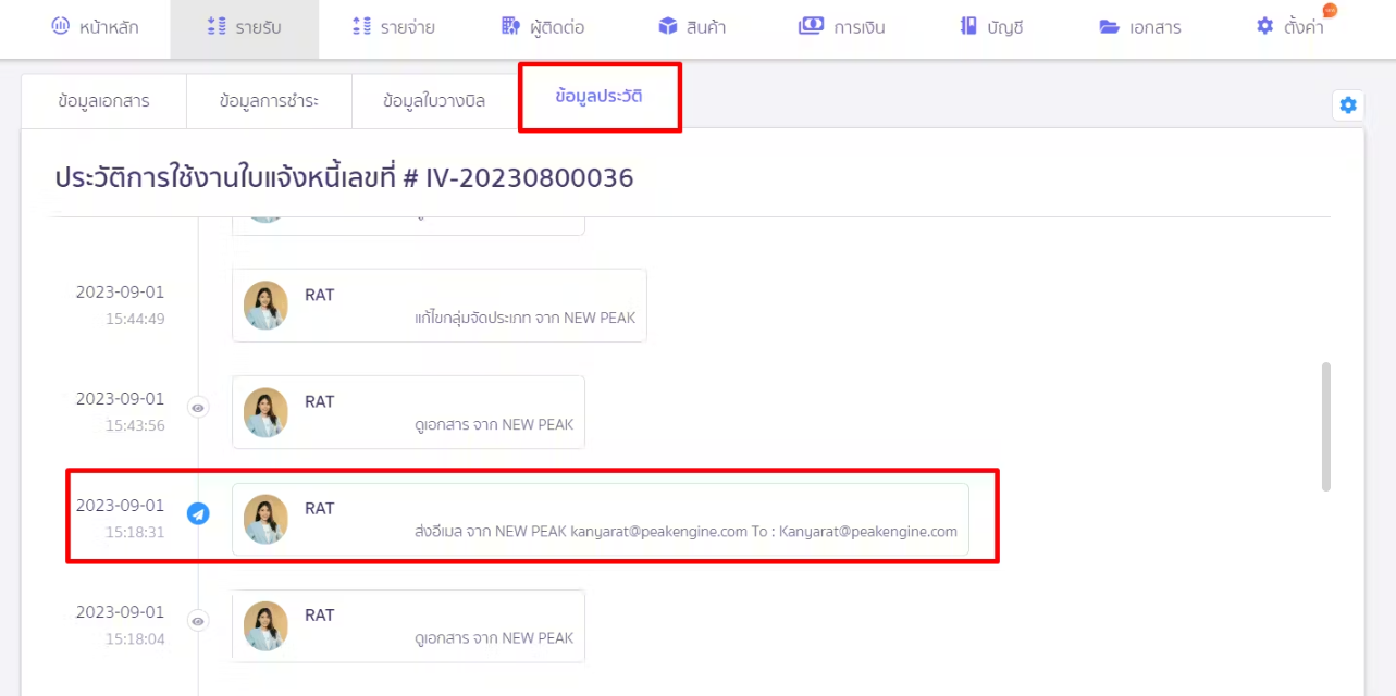 วิธีตรวจสอบสถานะการส่งอีเมลของเอกสารบนPEAK