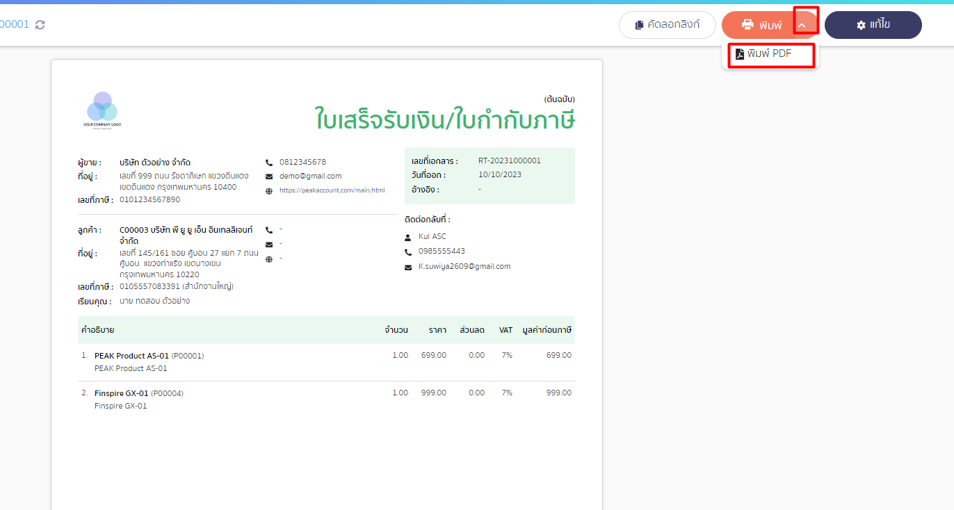 กดสร้างใบกำกับภาษีบน PEAK TAX (ฉบับที่ 2)