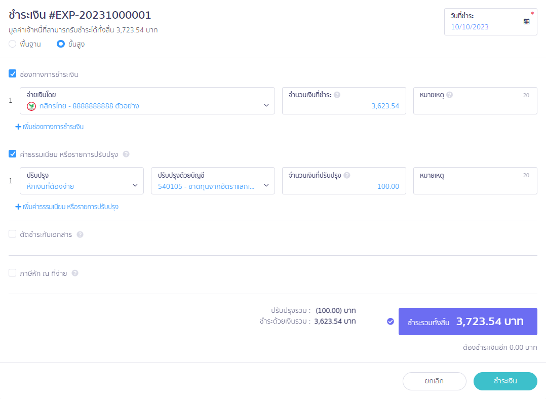 บันทึกค่าใช้จ่ายเพื่อซื้อสินทรัพย์ และค่าใช้จ่ายอื่นรวมในบิลเดียวกัน