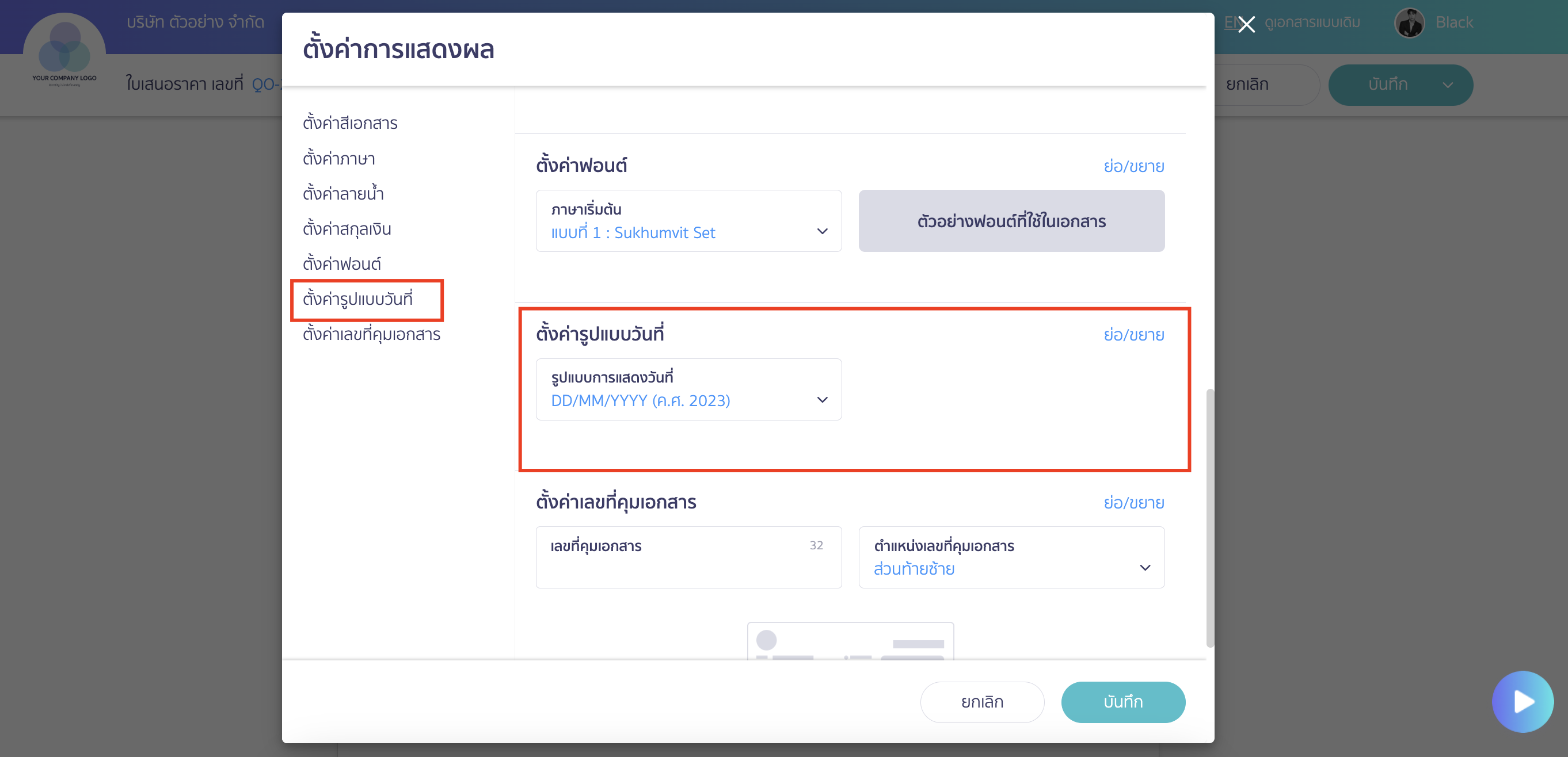 การออกเอกสารรายรับ-รายจ่าย รูปแบบของวันที่หน้าเอกสารจะแสดงข้อมูลของวันที่ทำรายหน้าเอกสาร โดยระบบจะตั้งค่าเริ่มต้นการแสดงรูปแบบวันที่เป็น ค.ศ. หากผู้ใช้งานต้องการเปลี่ยนรูปแบบของวันที่ได้โดย กดพิมพ์เอกสาร > กดแก้ไขที่หน้า Online View > ตั้งค่าแสดงผล > ตั้งค่ารูปแบบวันที่ สามารถอ่านคู่มือเพิ่มได้ที่นี่