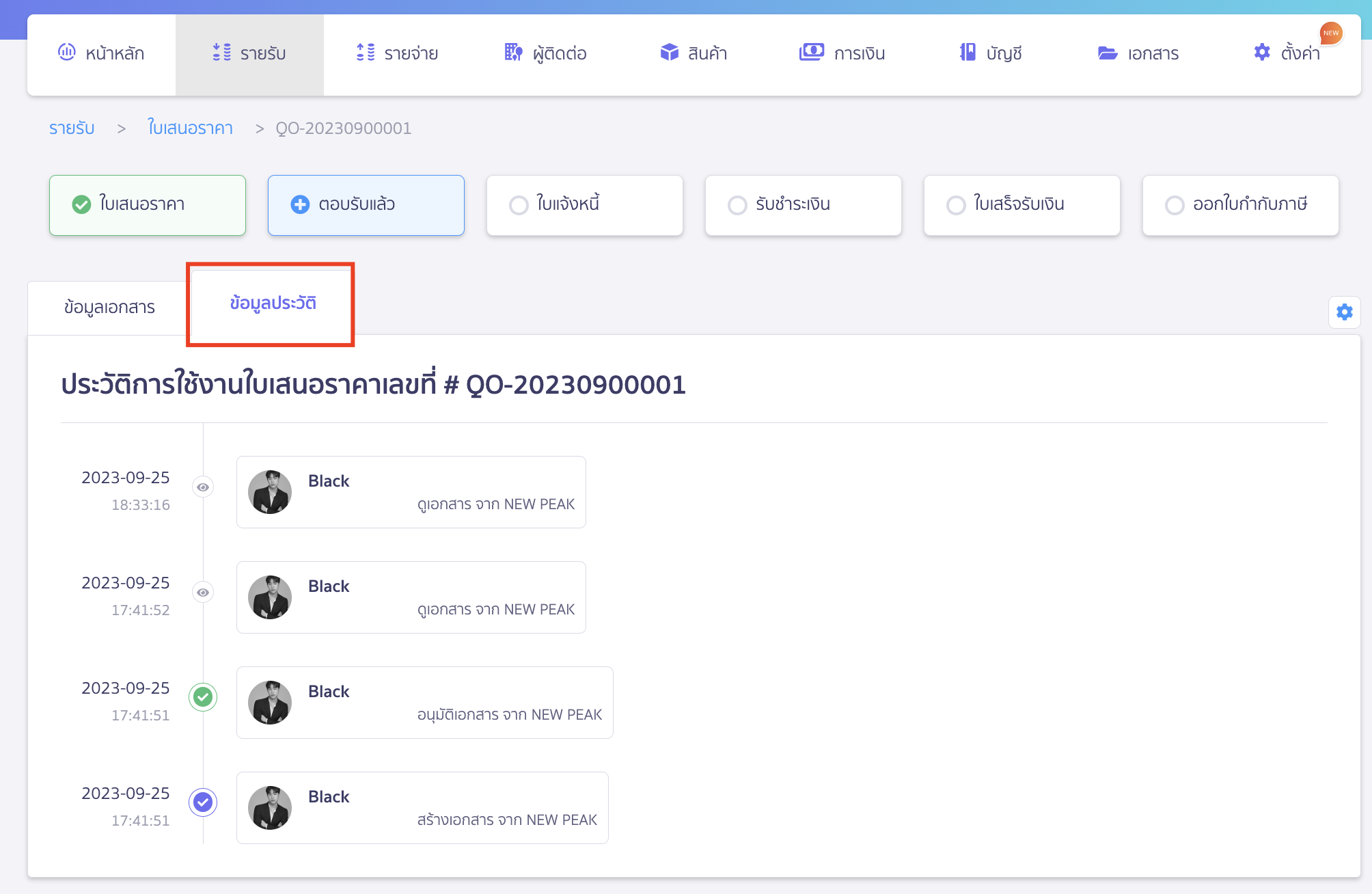 บันทึกประวัติ การสร้างและอนุมัติเอกสาร